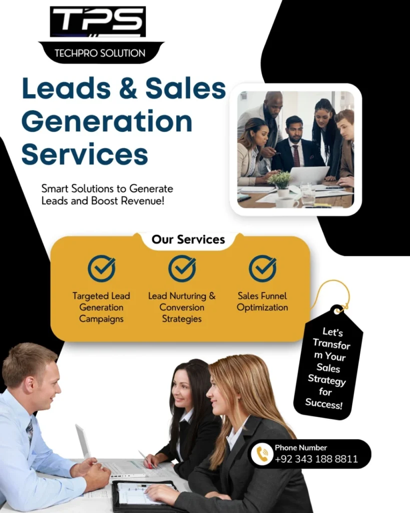 Every business, regardless of size, thrives on one key factor: customers. Generating high-quality leads and converting them into sales is essential for sustainable growth. TechPro Solutions (TPS) offers specialized leads and sales generation services designed to help businesses attract the right audience, nurture prospects, and increase revenue.
